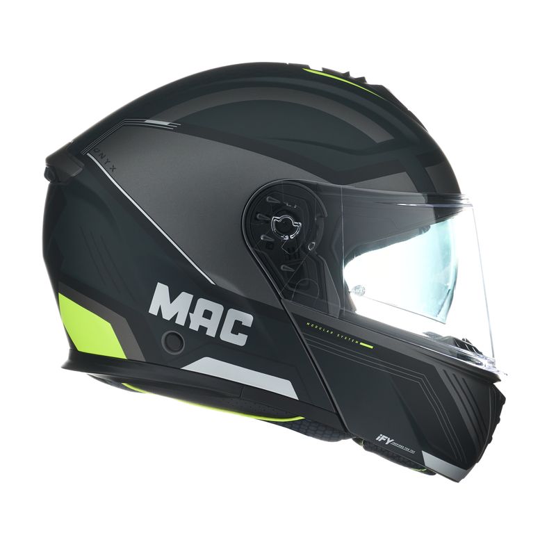 Este casco modular ofrece la combinación ideal entre protección, comodidad y funcionalidad para quienes buscan enfrentar los desafíos diarios sobre dos ruedas. Fabricado en resistente ABS, con calota única y un peso equilibrado de 1650±50g, el ONYX MAC cuenta con doble visor para adaptarse a cualquier condición de luz.